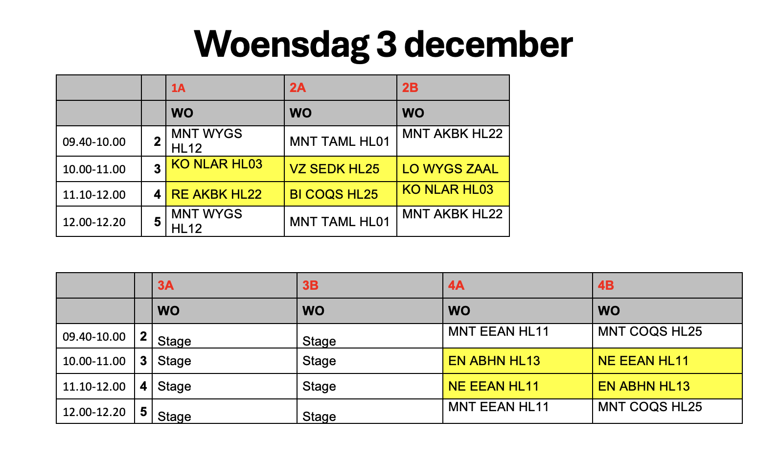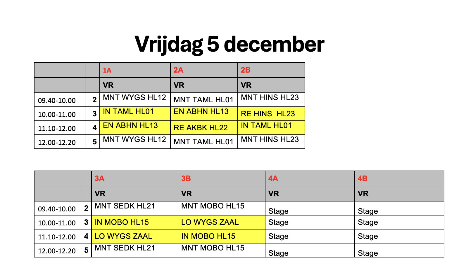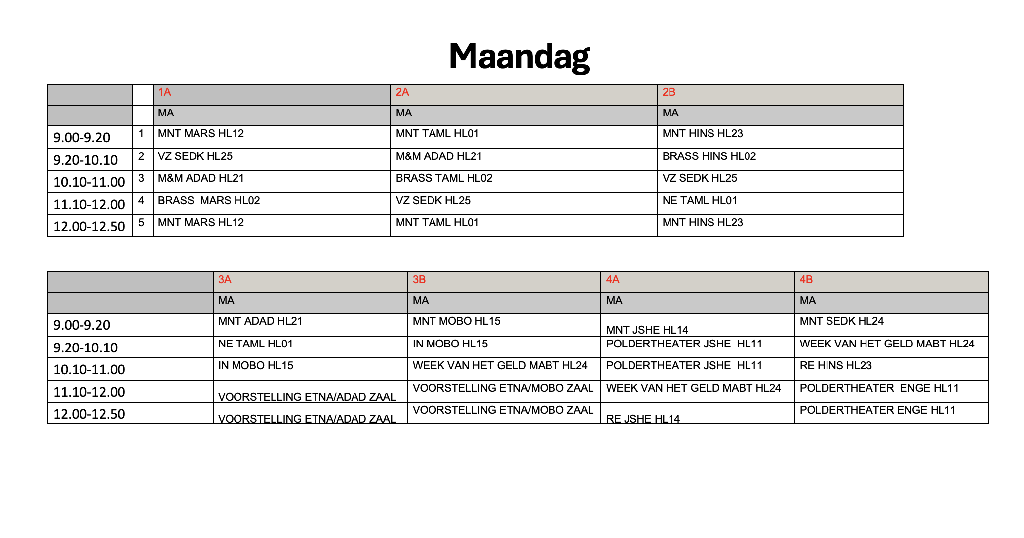 Hieronder staat het weekrooster dat ingaat in schooljaar 2025-2026. Klik op de dag om deze te vergroten.