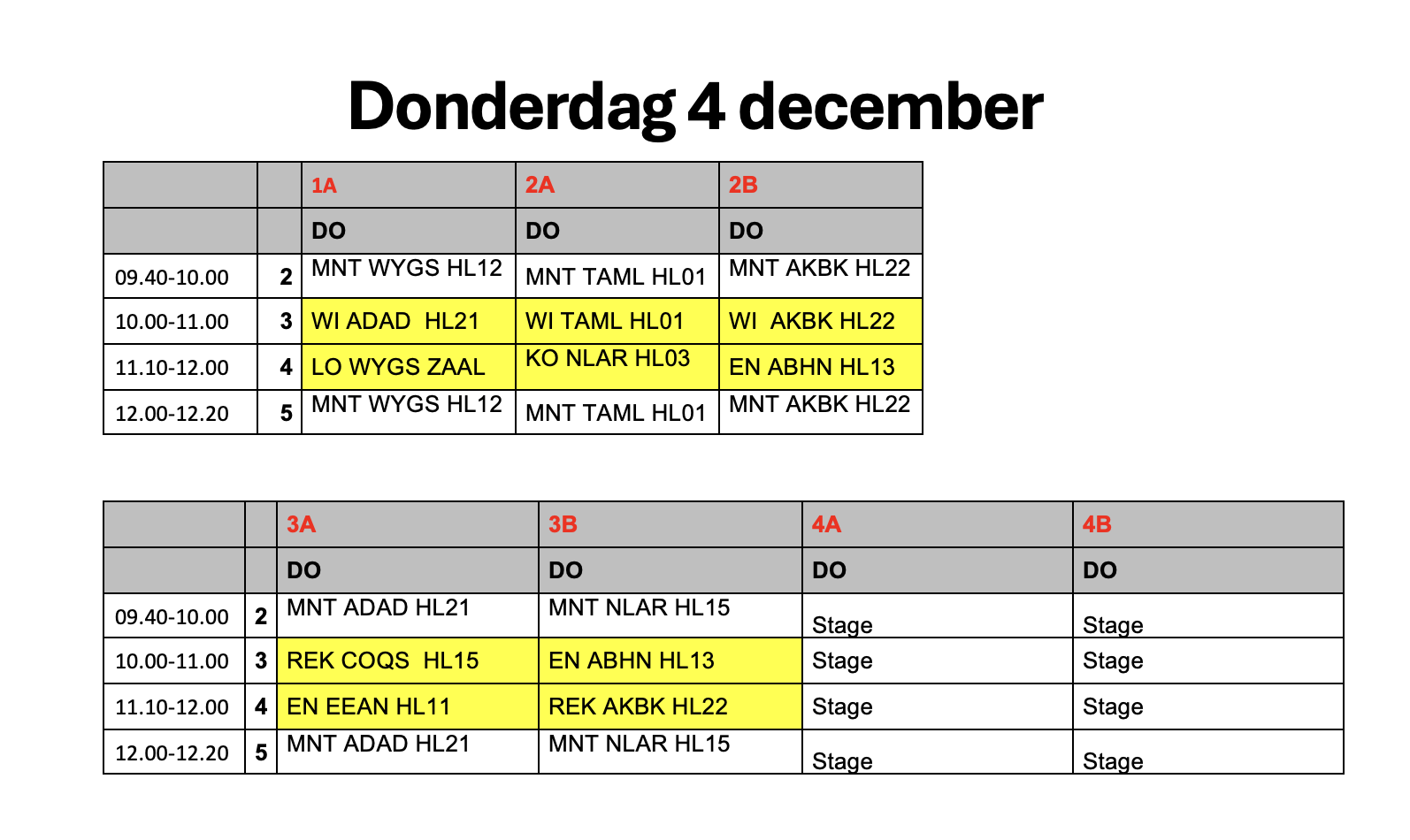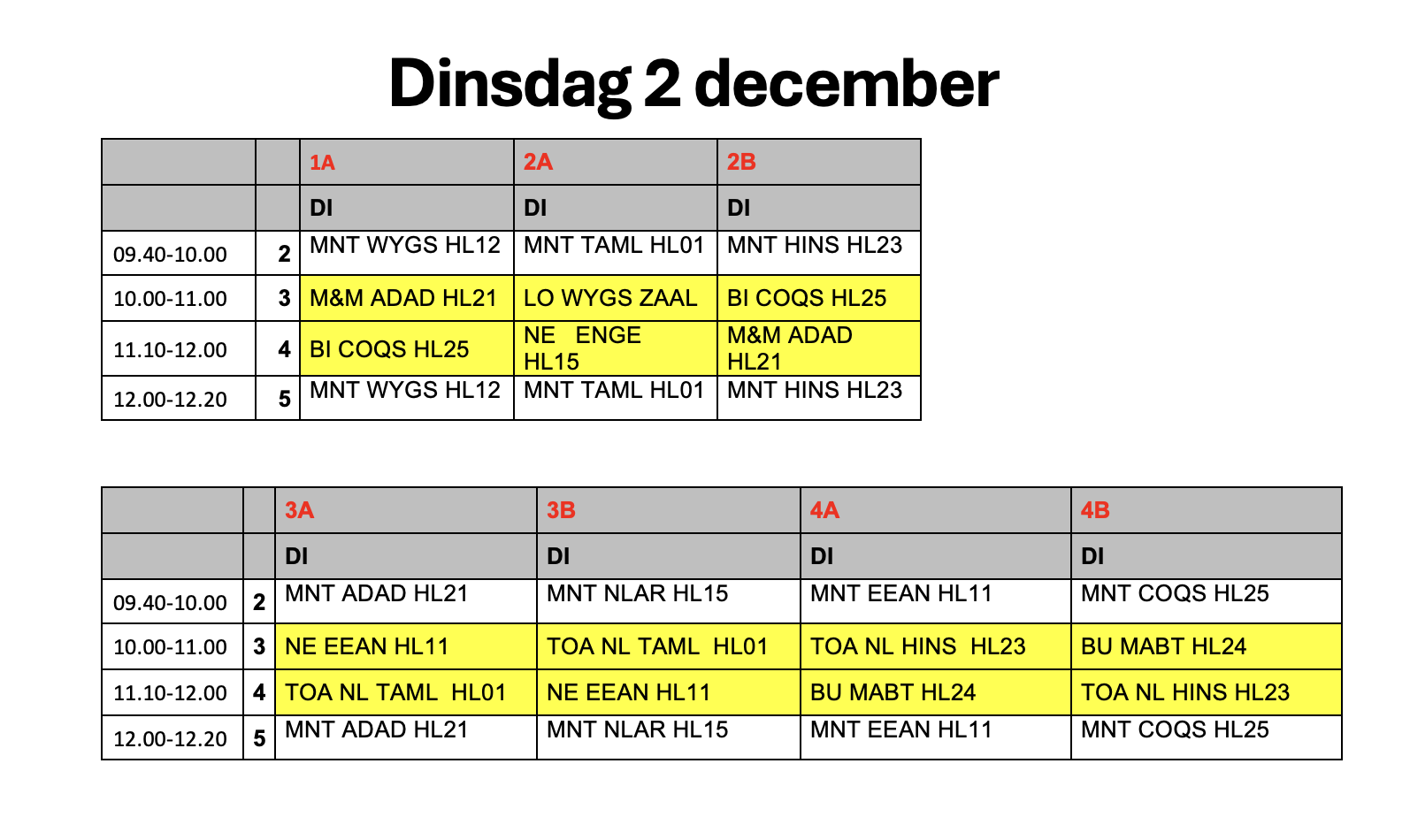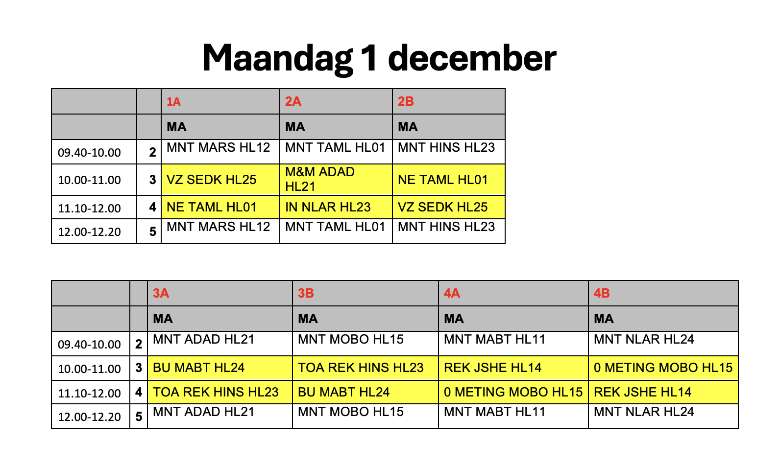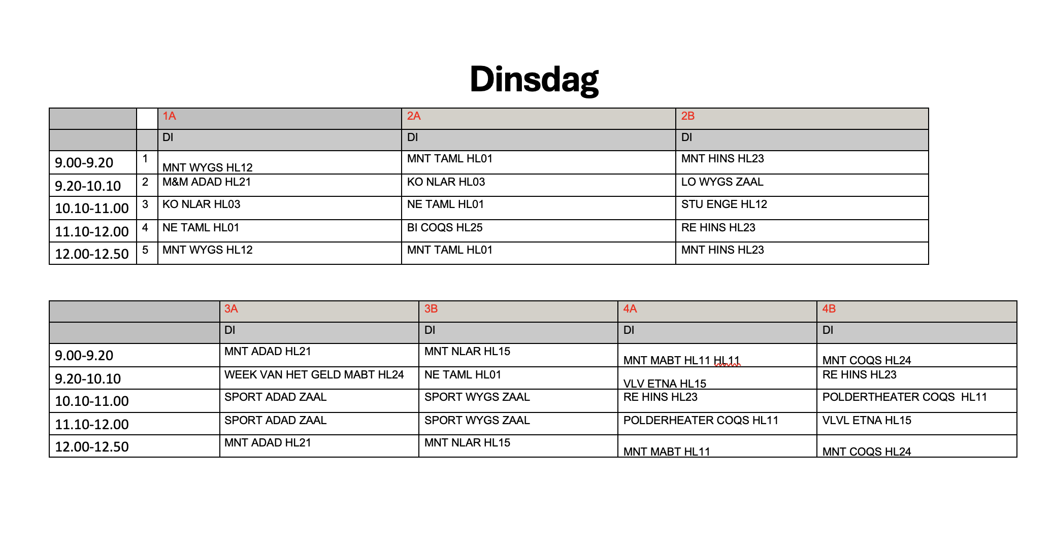 Hieronder staat het weekrooster dat ingaat in schooljaar 2025-2026. Klik op de dag om deze te vergroten.